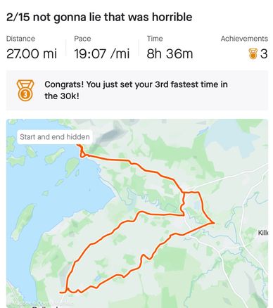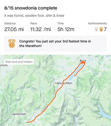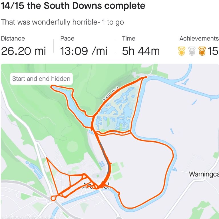 I will update my Strava routes here & I’ll be using these awesome Splashmaps to help me navigate. I’ve got no grand ideas of super speed sub 4 hour runs but I do want to challenge myself everyday so i’ll take each run as it comes & hope that I cross the finish by foot, knee or pulling myself along with a dramatically lolling tongue slugging around on the trails!
